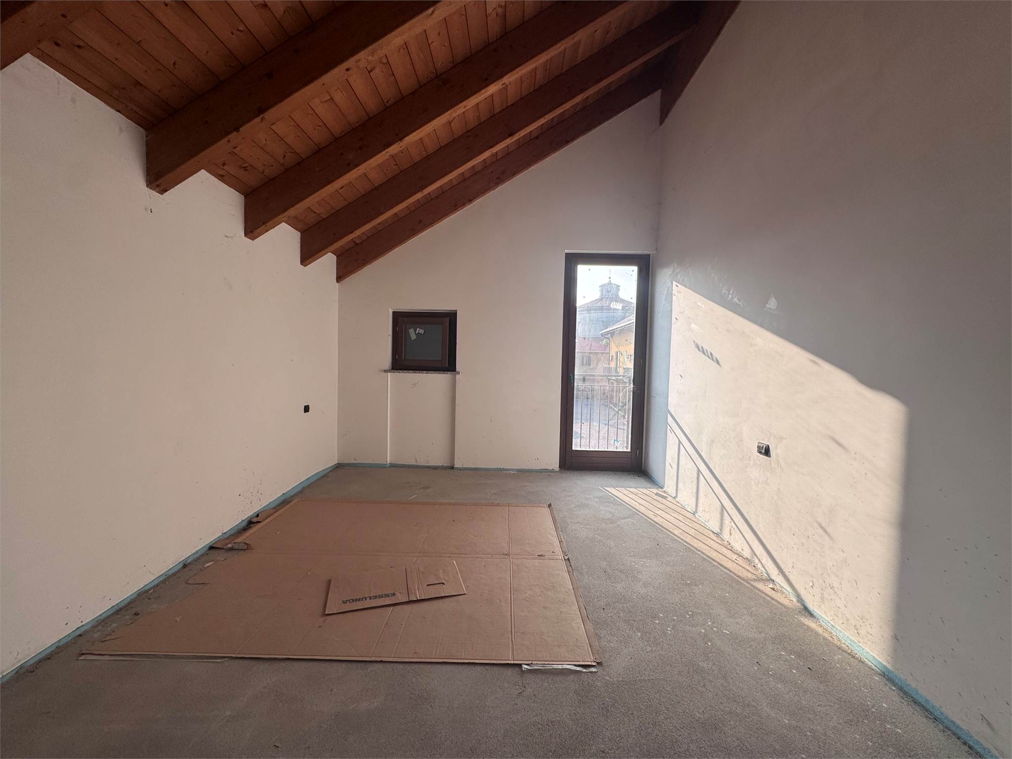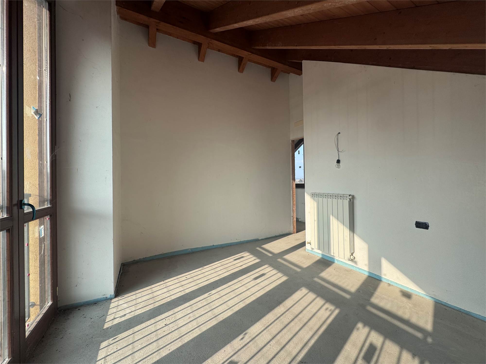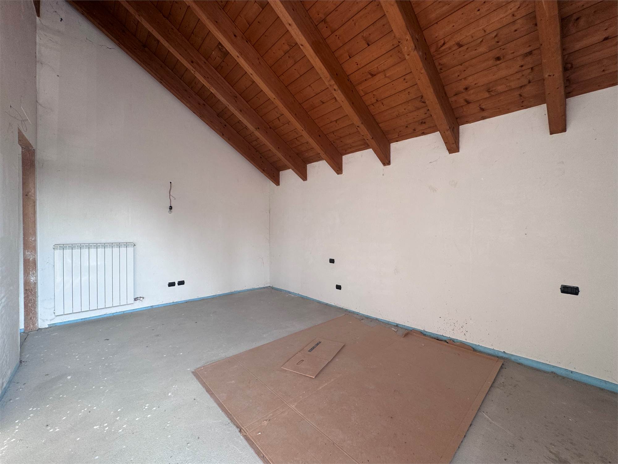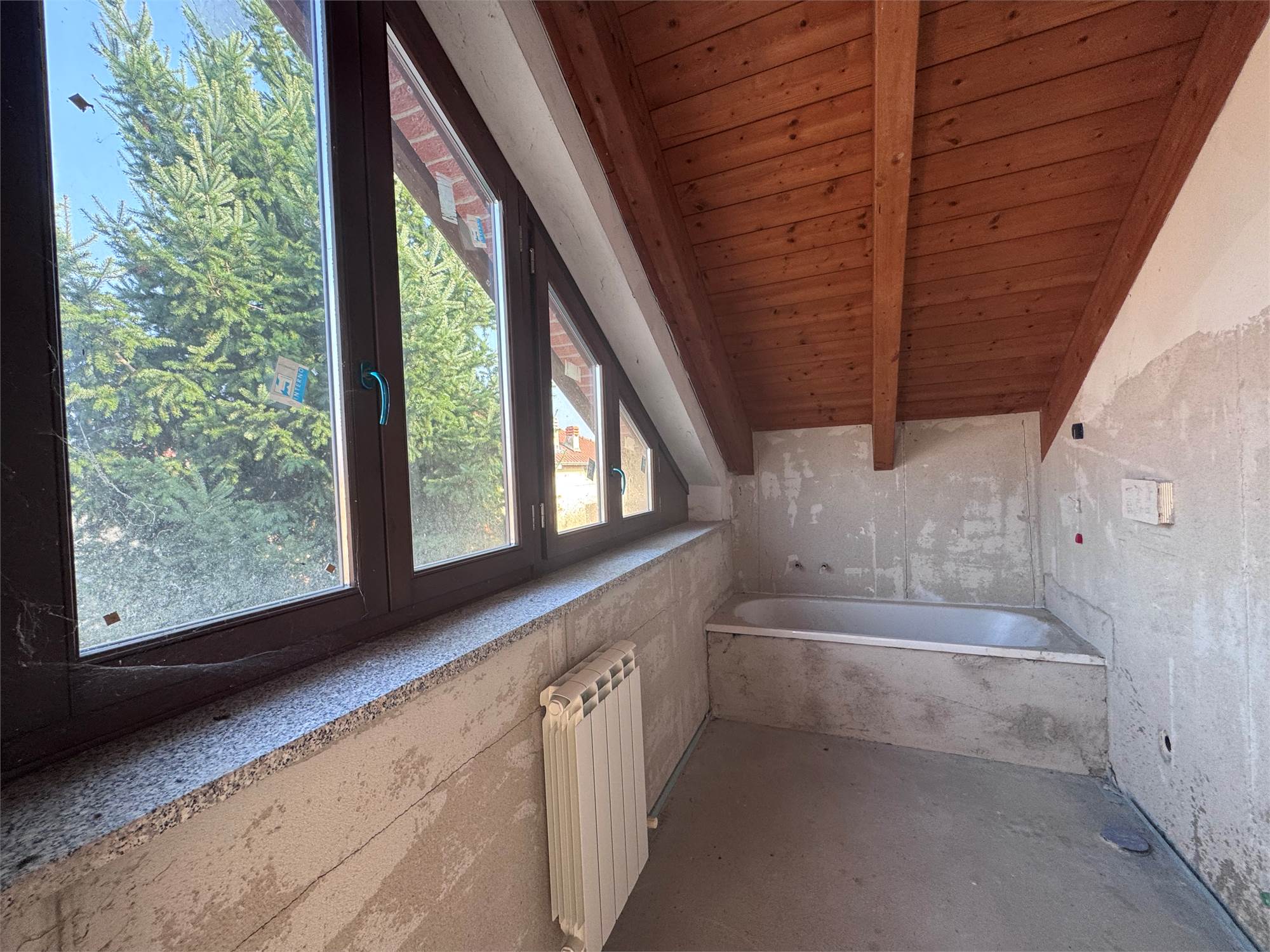 Gli ambienti risultano ben distribuiti e ariosi, con travi in legno a vista che donano calore e carattere alla casa. Grazie alla buona esposizione e alle ampie finestre, l’appartamento gode di un’ottima luminosità naturale.