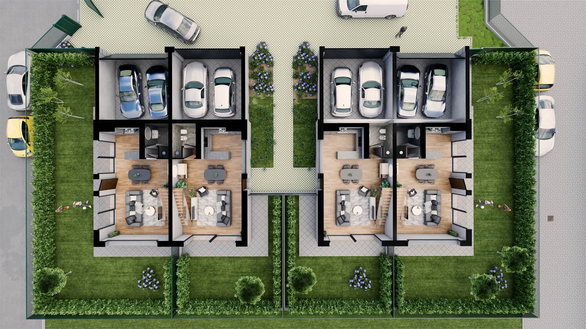 Ogni villa, in classe energetica A4, dispone di giardino privato, ampie terrazze vivibili, impianto fotovoltaico e pompa di calore aria/acqua.